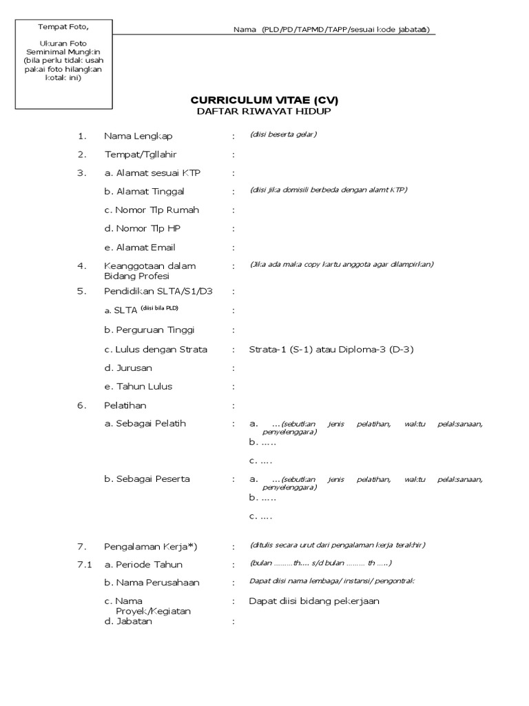 Anda harus bisa membuat dokumen ini, contoh curriculum vitae untuk lamaran kerja banyak dibagikan di internet. Membuat curriculum vitae (cv) atau resume untuk melamar pekerjaan merupakan salah satu syarat yang harus dilakukan oleh pencari kerja. Berikut saya tampilkan dan anda dapat mendownloadnya melalui google docs. Butir peribadi 1.1 nama seperti dalam kad pengenalan : Setiap orang sebenarnya sudah memiliki cv, namun banyak di antara mereka yang tidak menuangkannya di dalam tulisan.